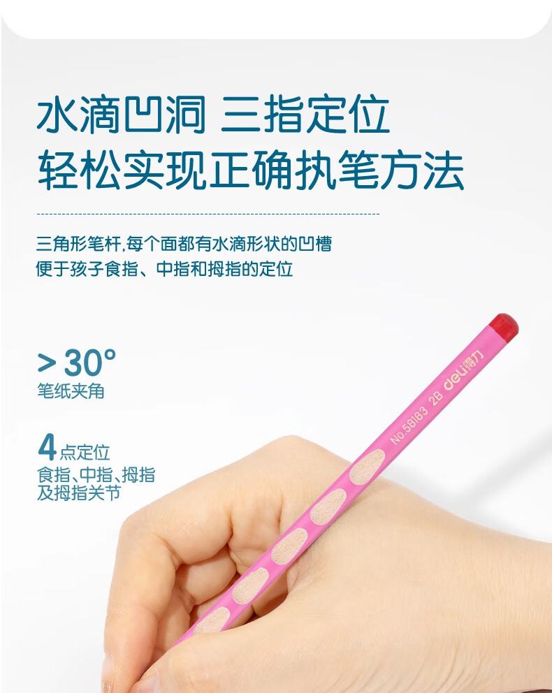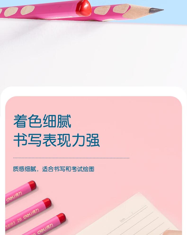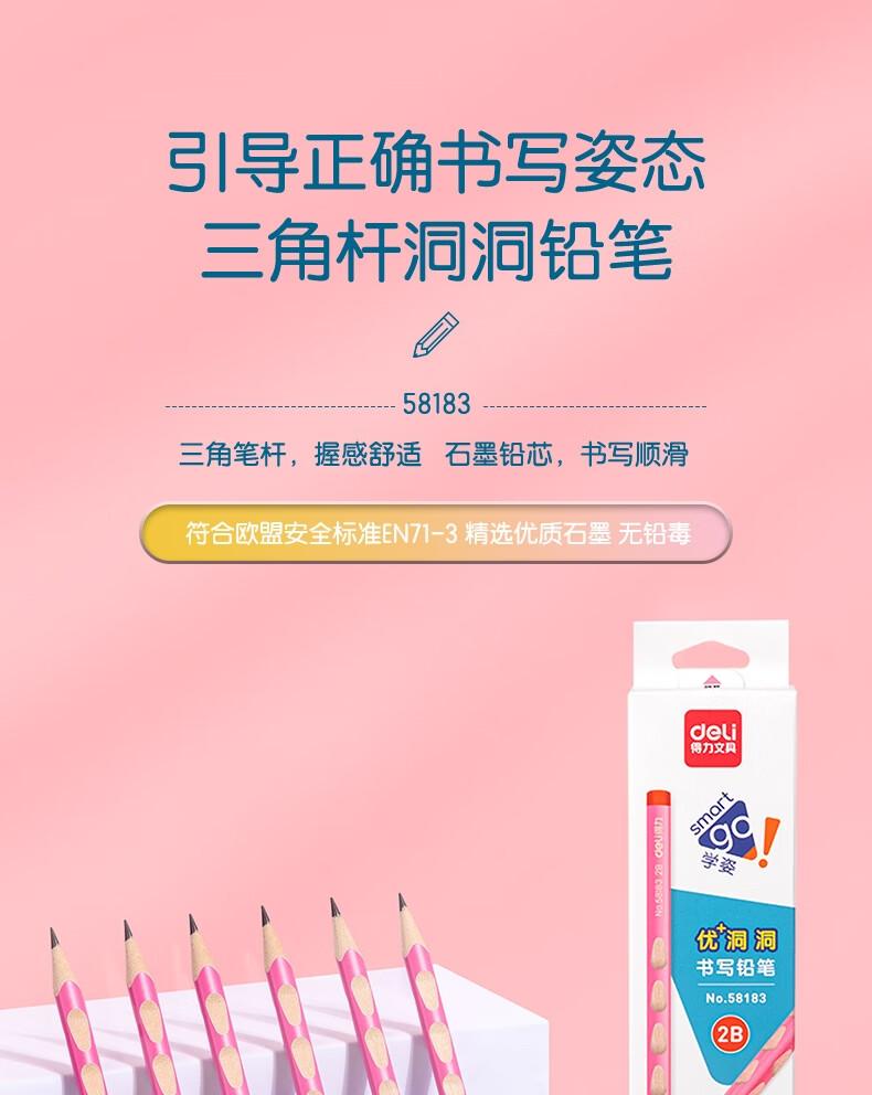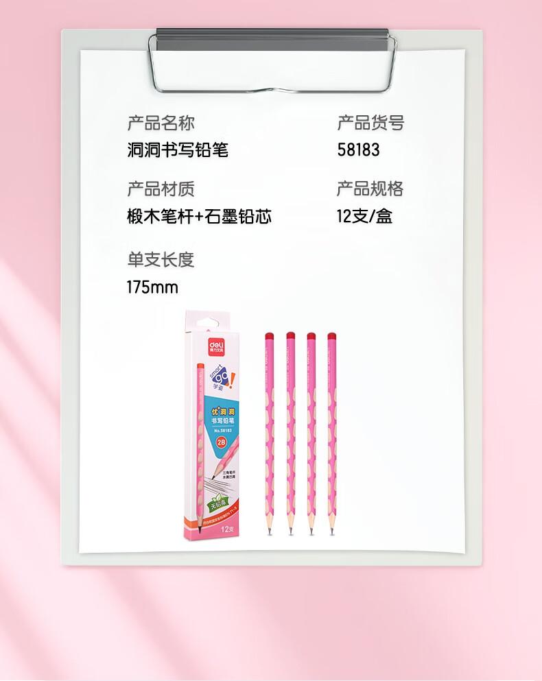得力58183优+洞洞书写铅笔2B(粉)(12支/盒)