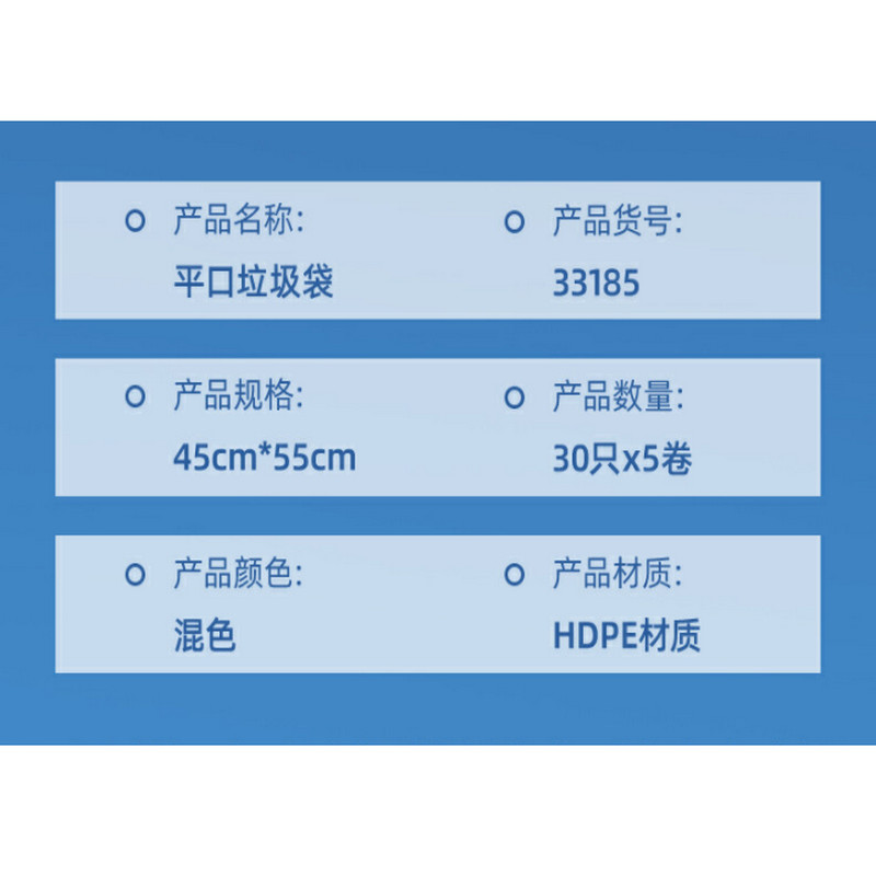 商品标题:得力得心33185-垃圾袋(混)(30只/卷,5卷/包)(包)