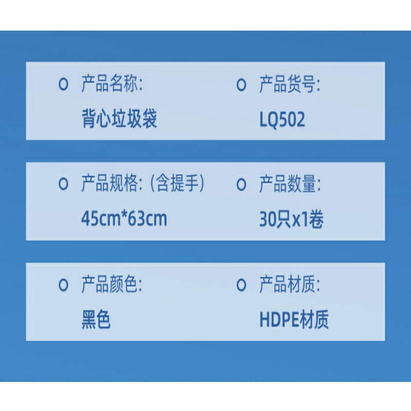 得力得心LQ502-背心式垃圾袋(黑色)(30只/卷,1卷/包)(包)