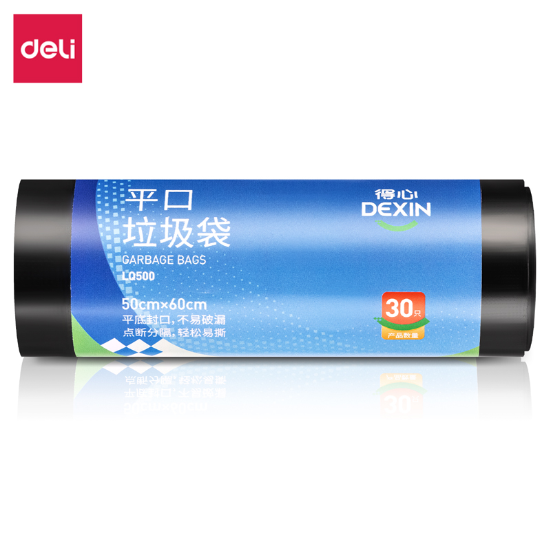 得力(DELI)得心LQ500-平口垃圾袋(黑色)(30只/卷,1卷/包)(包)