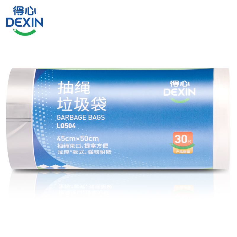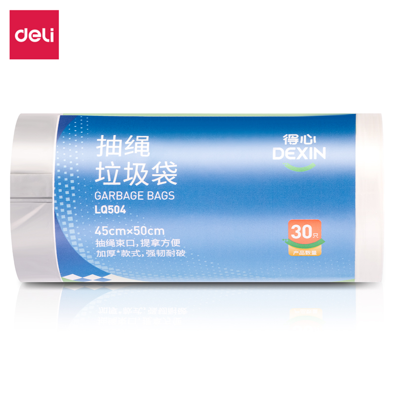 得力得心LQ504-抽绳垃圾袋(白色)(30只/卷,1卷/包)(包)