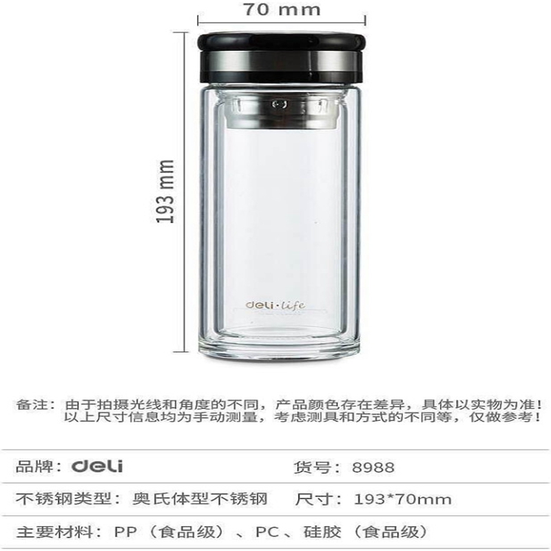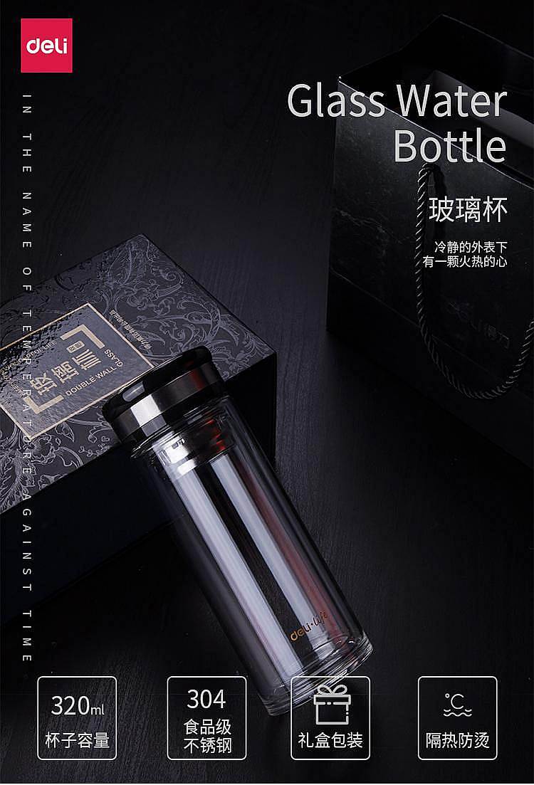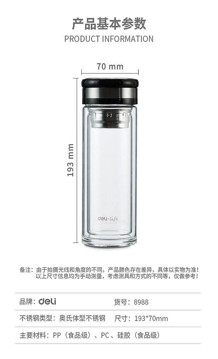 得力(deli) 8988 320ml双层隔热玻璃杯透明(单位:只)