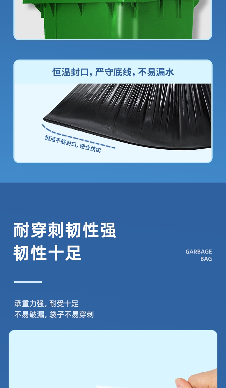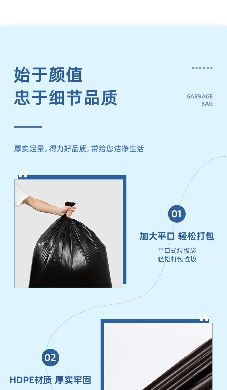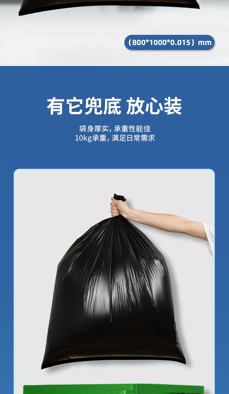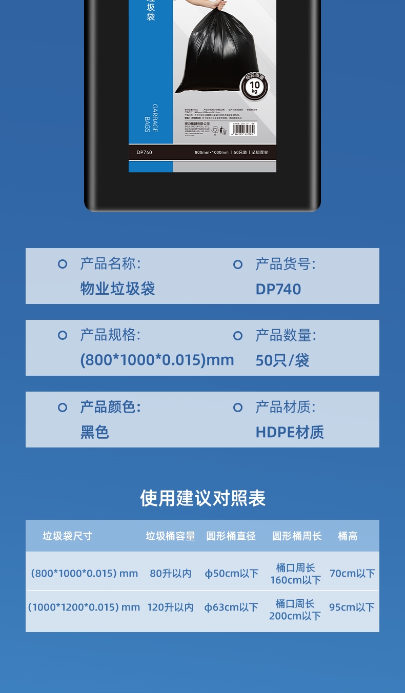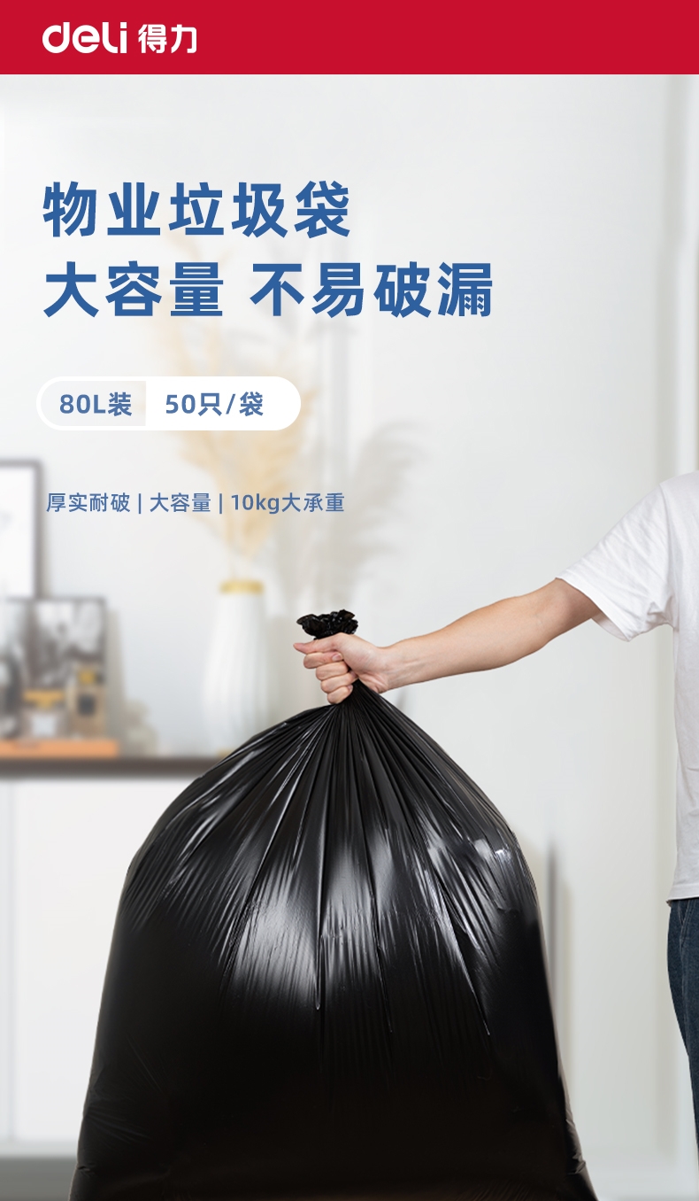商品标题:得力DP740物业垃圾袋(黑)80cmx100cm(50只/包)