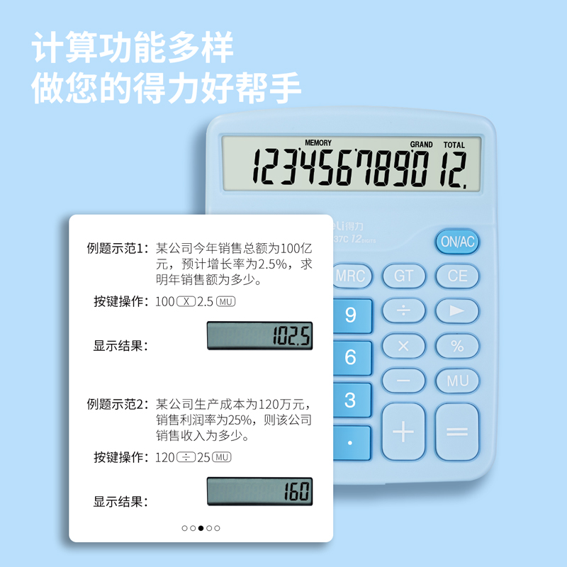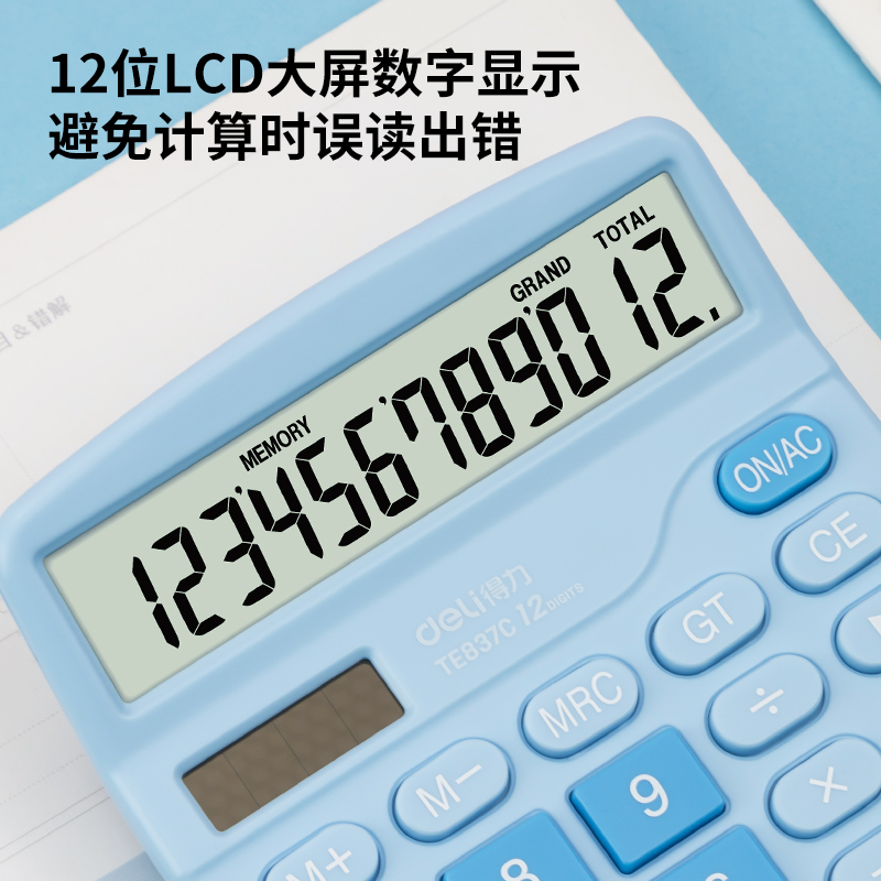 商品标题:得力TE837C桌面计算器(浅蓝)(台)