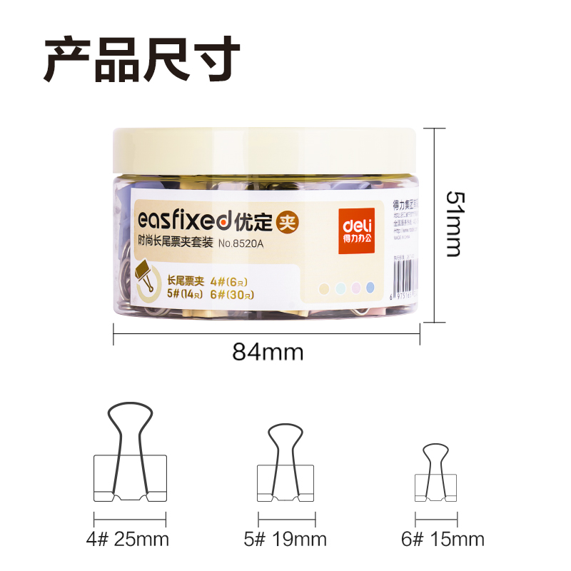 商品标题:得力8520A时尚长尾票夹套装(混)(筒)