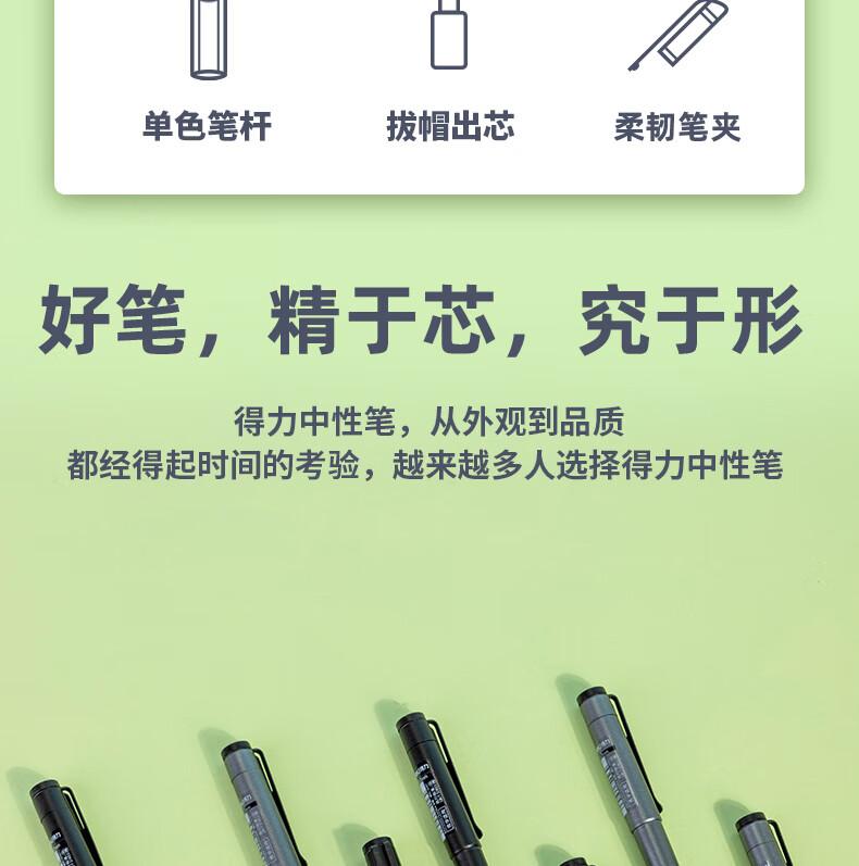 商品标题:得力S96-A拔帽办公中性笔0.7mm子弹头(黑)(支)