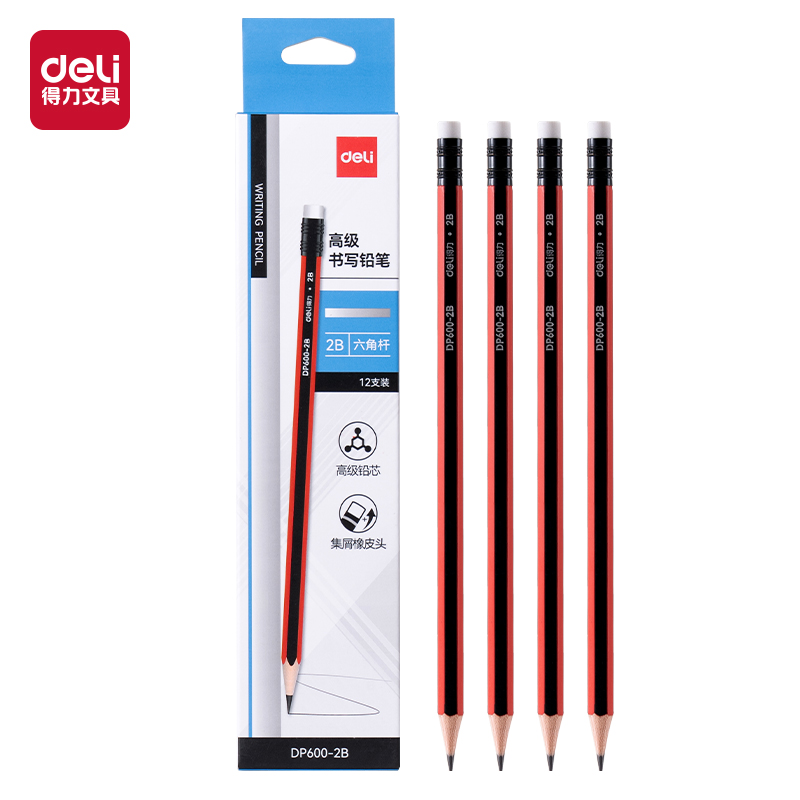 得力DP600-2B红黑六角杆书写铅笔2B(混)(12支/盒)