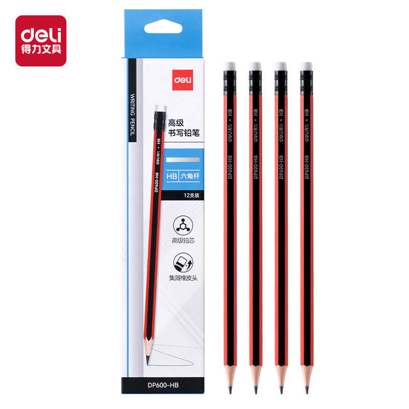 商品标题:得力DP600-HB红黑六角杆书写铅笔HB(混)(12支/盒)