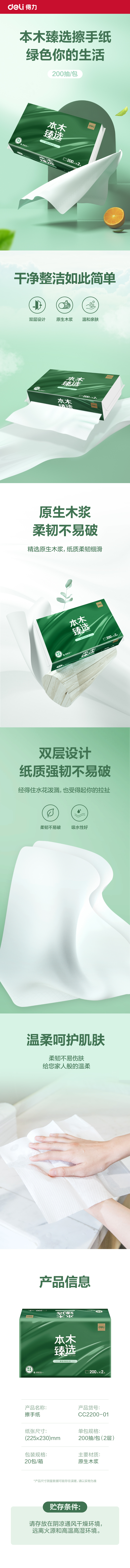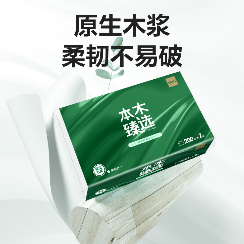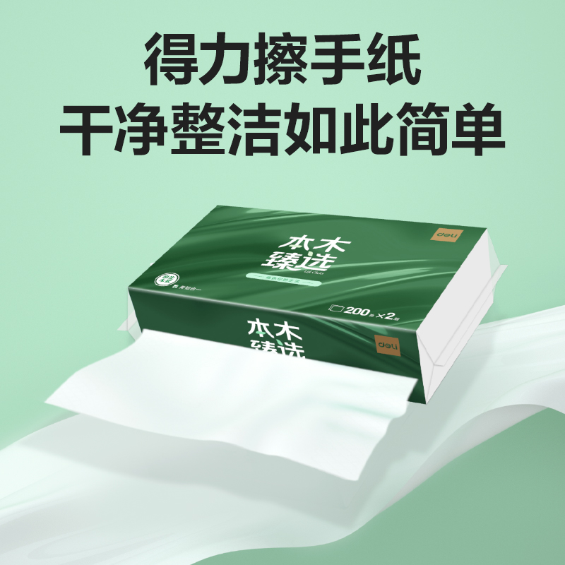 得力本木臻选CC2200-01擦手纸2层200抽(白)(包)