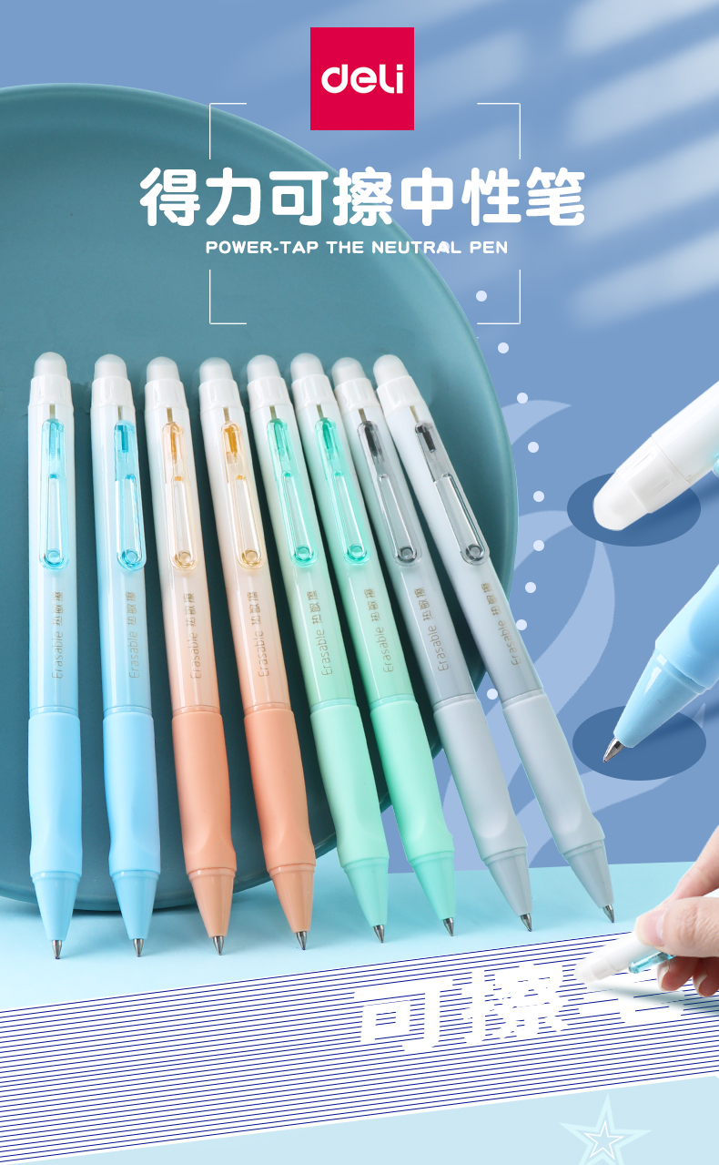 商品标题:得力A667矫姿按动可擦中性笔0.5mm子弹头(可擦晶蓝)(支)
