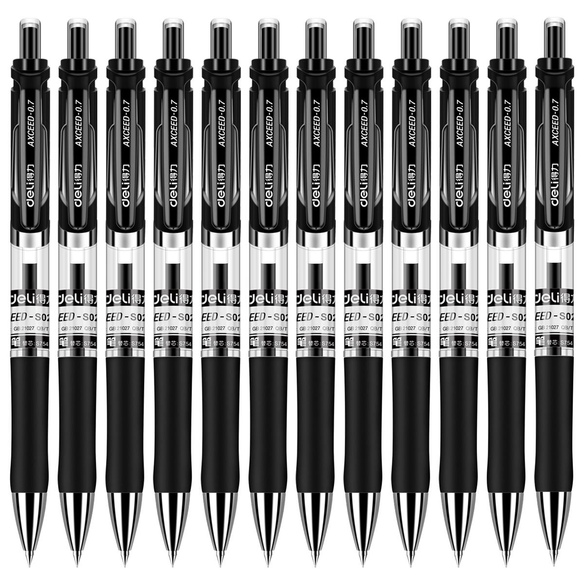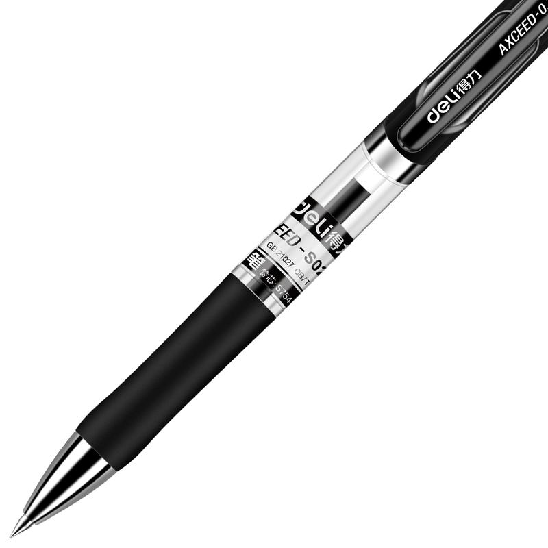 得力(DELI)S02黑芯0.7mm按动子弹头12支/盒签字笔 中性笔 水笔(单位:支)