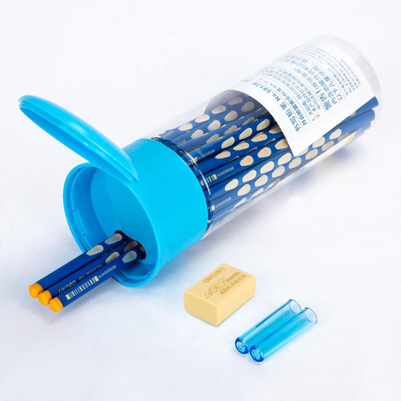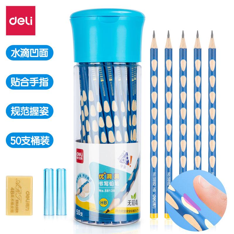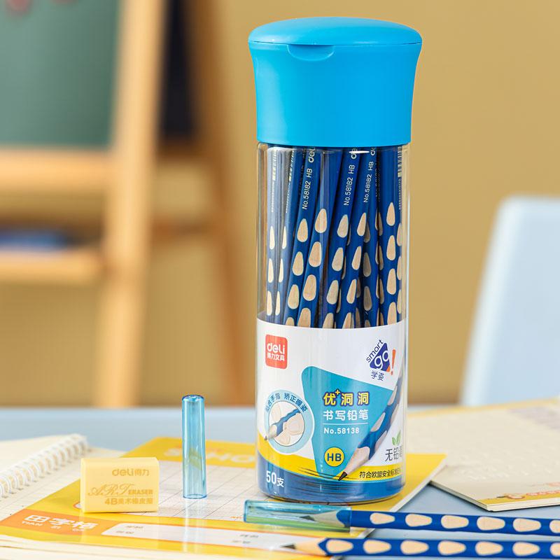 得力58138_50支HB桶装洞洞笔(混)(50支/筒)