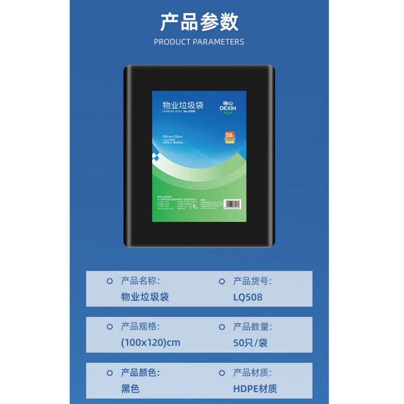 得力得心LQ508物业垃圾袋(黑色)100cmx120cm(50只/包)
