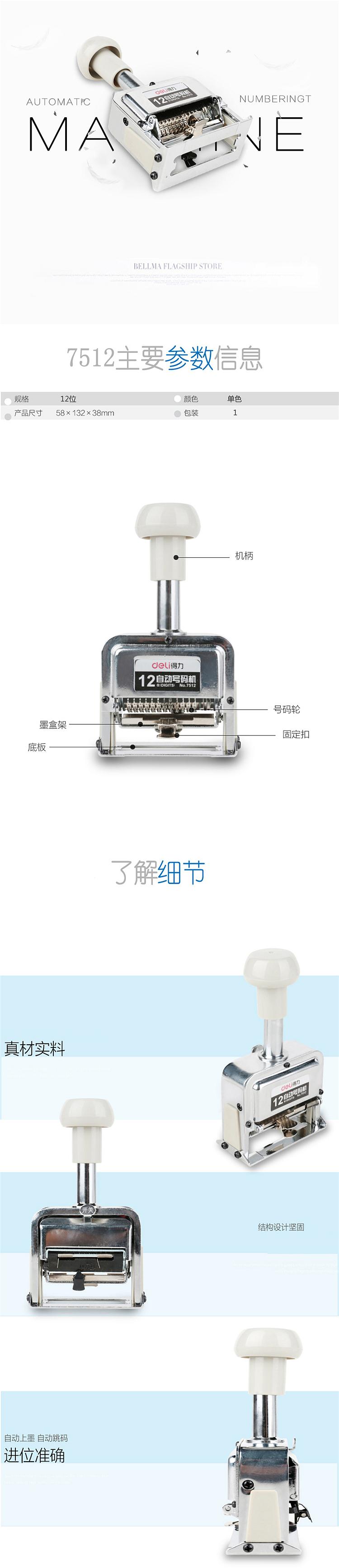 得力 7512 自动号码机 12位(digits) (台) 白色