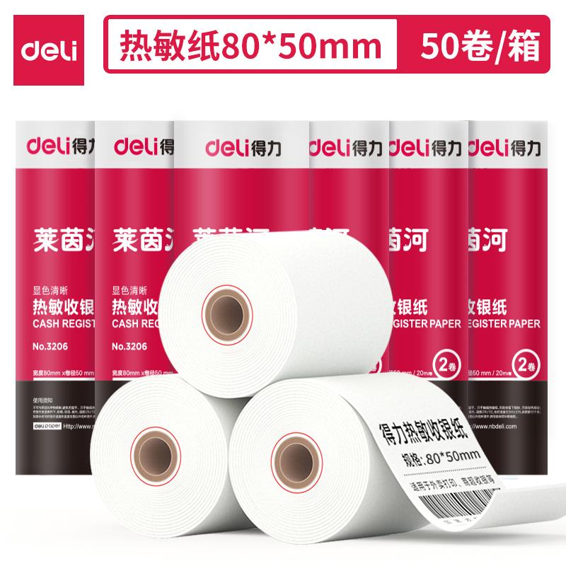 得力3206莱茵河收银纸(白)80mm*50mm*20m(白)(2卷/筒)(筒)