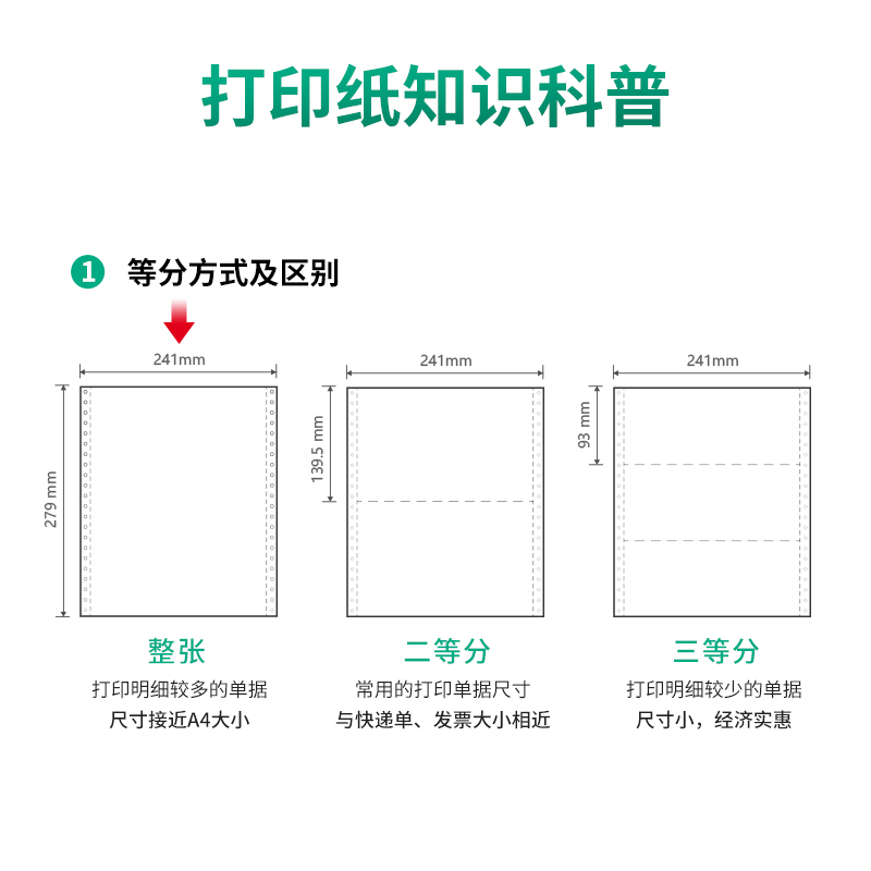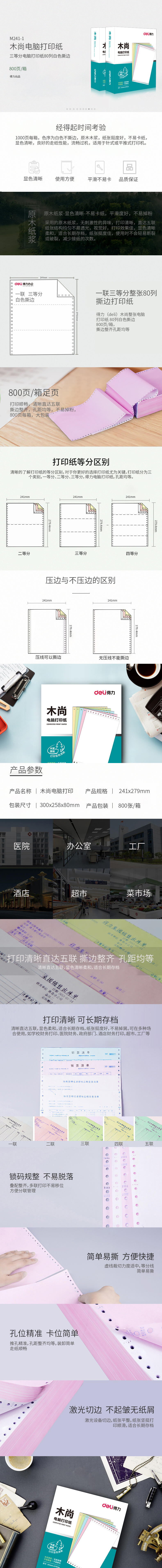 商品标题:得力木尚M241-1电脑打印纸(1/3S白色撕边)(盒)