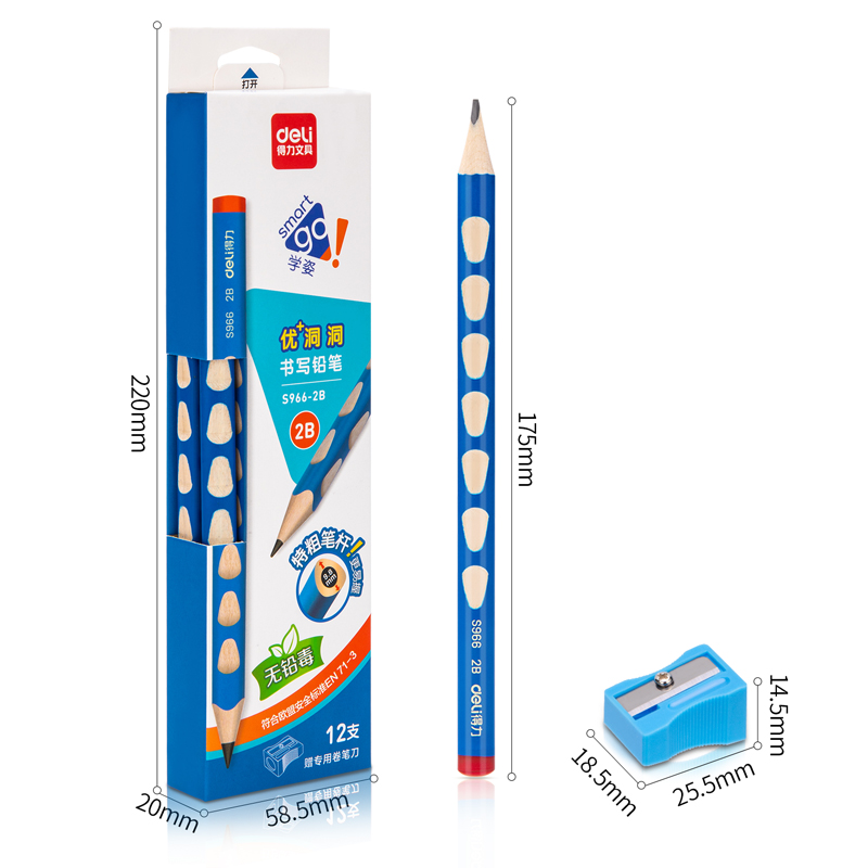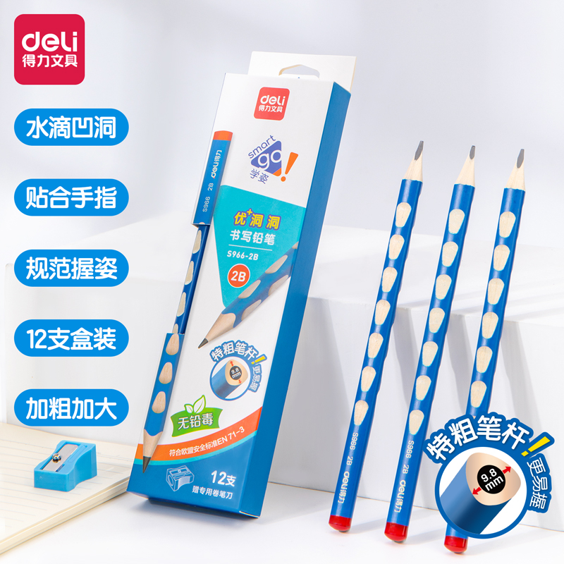 商品标题:得力S966-2B_12支彩盒装2B特粗洞洞铅笔(混)(12支/盒)(单位:盒)