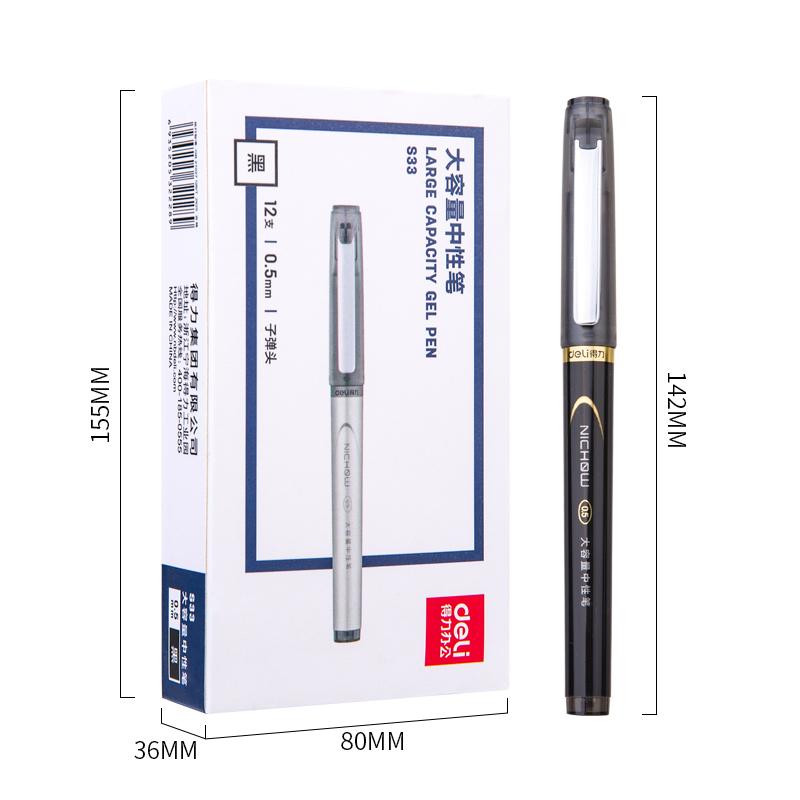 商品标题:得力 S33 签字笔中性笔水笔 0.5mm 12支/盒 (单位:盒) 黑色