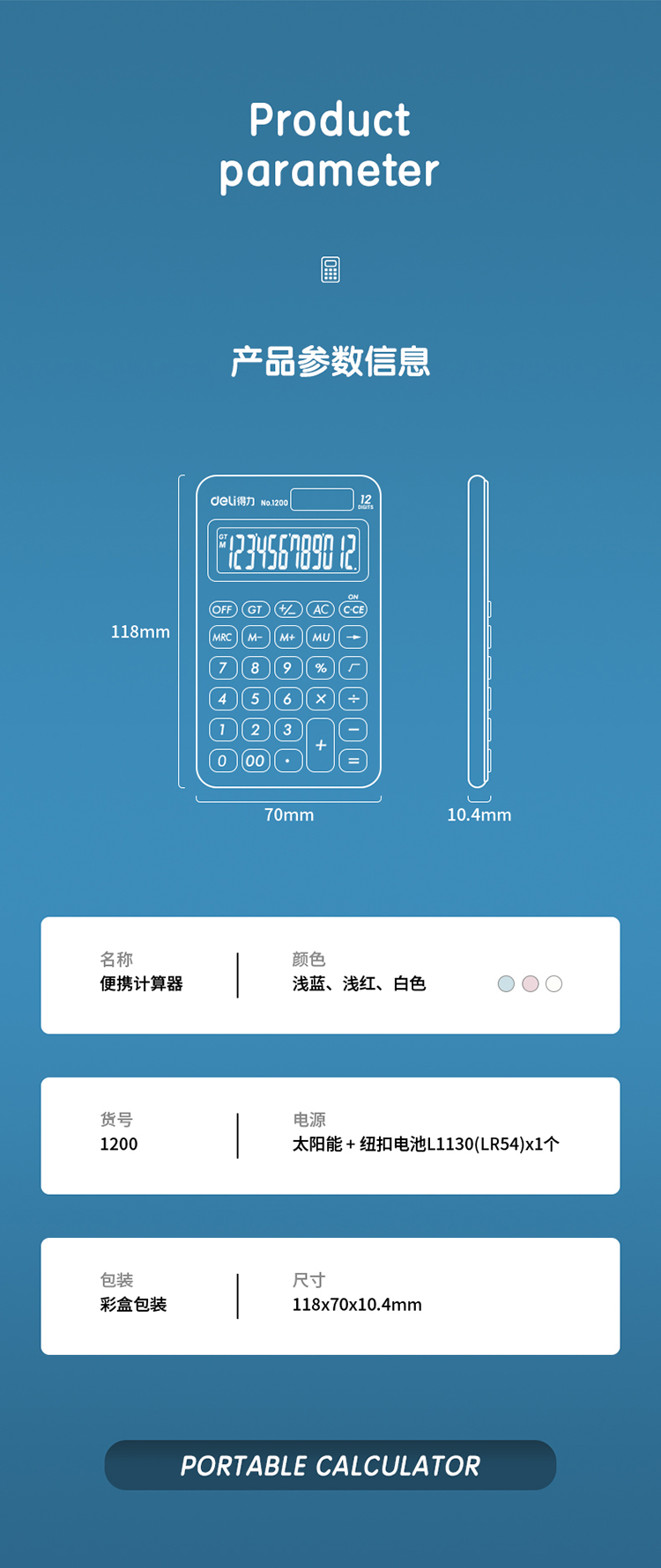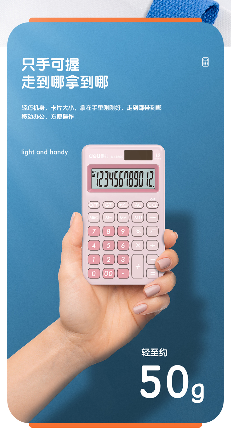 商品标题:得力1200便携型计算器(浅蓝)(台)
