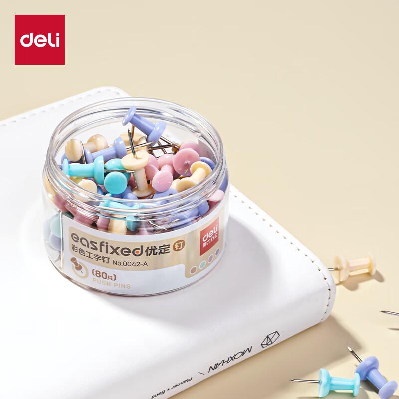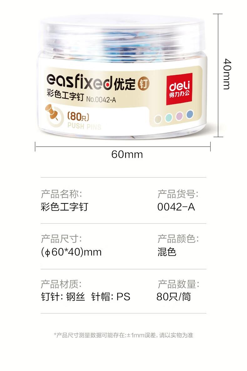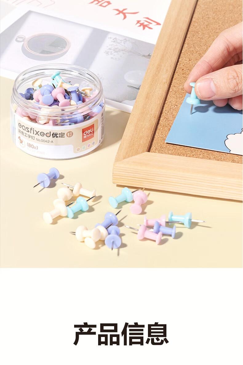 得力0042-A彩色工字钉(混)(80只/筒)