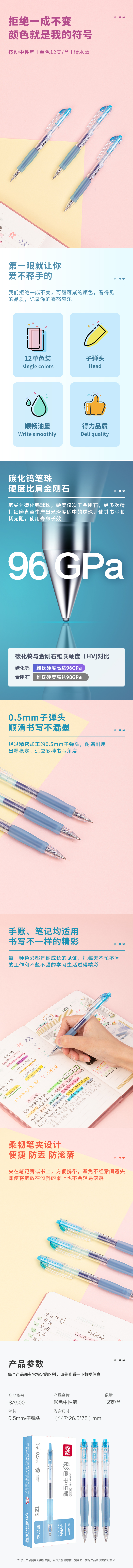 商品标题:得力SA500彩色中性笔0.5mm子弹头(晴水蓝)(支)