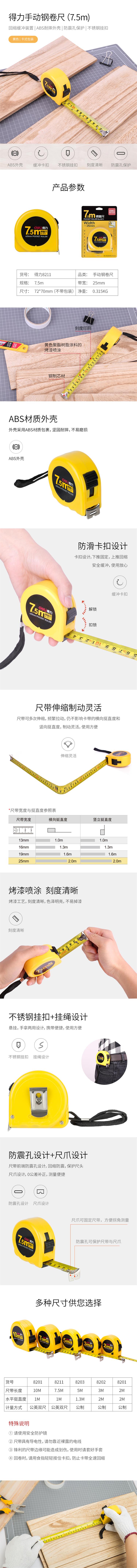 得力 8211 钢卷尺 7.5mx25mm (单位:个) 黄色