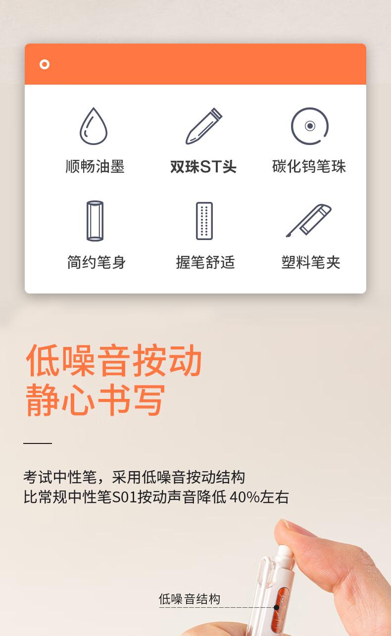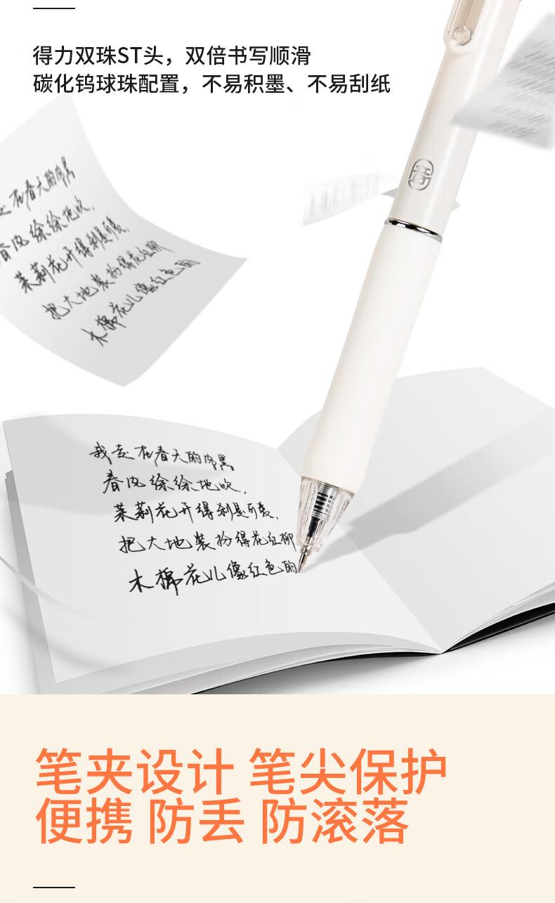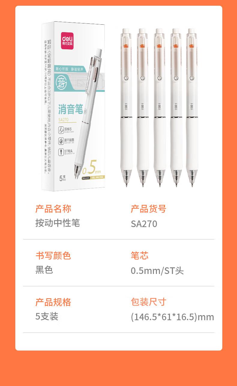 商品标题:得力SA270速干按动学生中性笔0.5mm双珠ST头(黑)(支)
