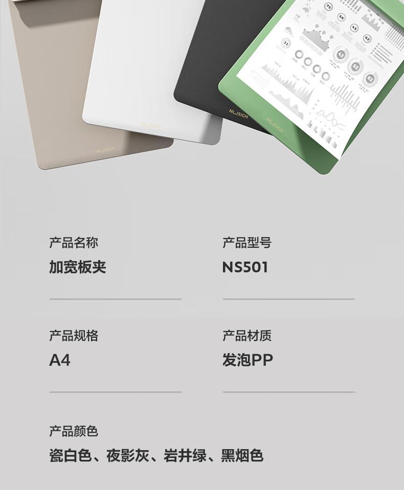 得力纽赛NS501加宽板夹(夜影灰)(个)