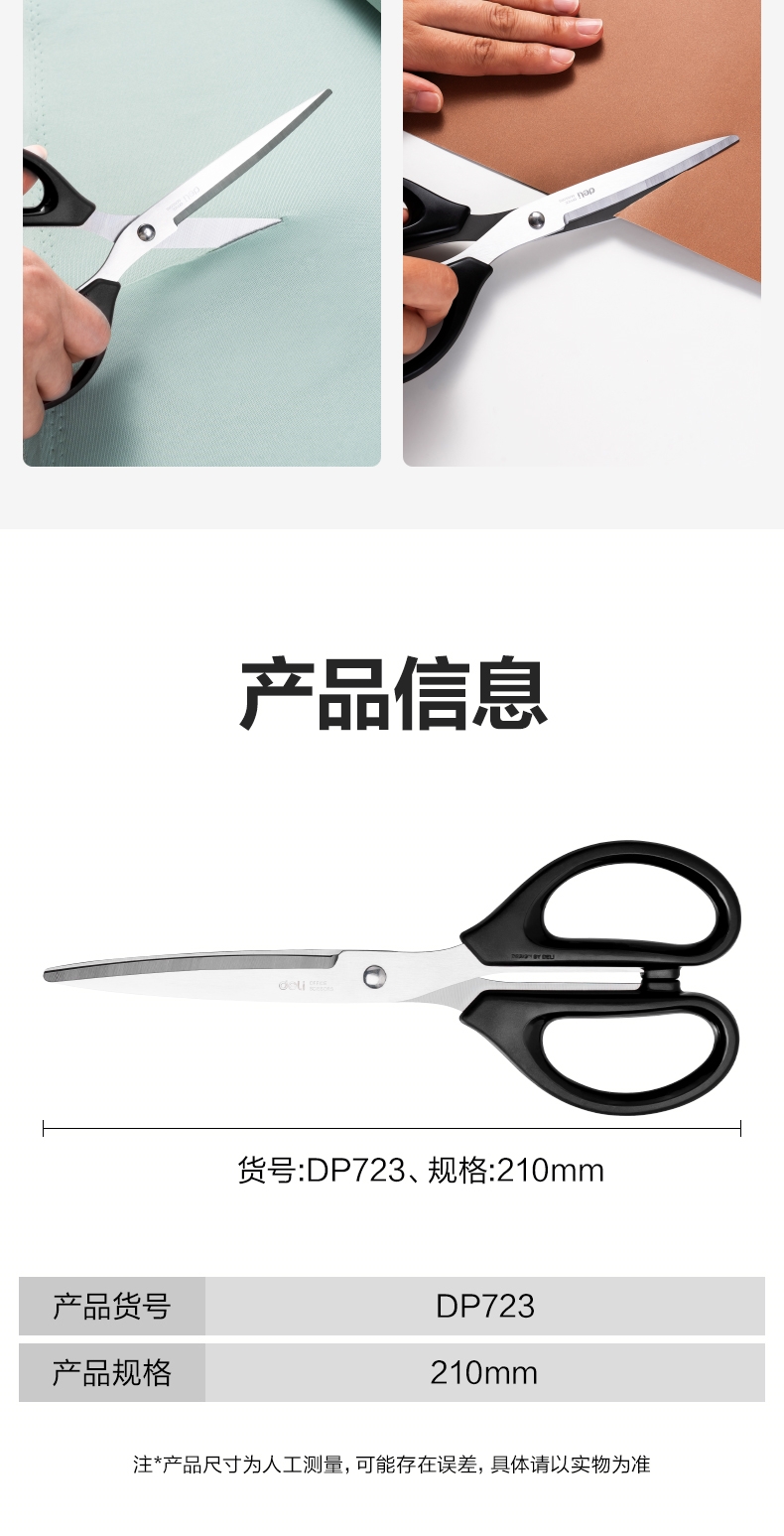 商品标题:得力DP723办公剪刀210mm(黑)(卡)