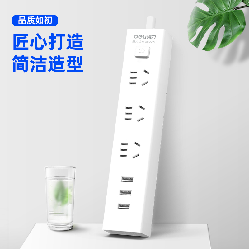 得力18288(1.8)插座 3组+3U总控 1.8米 白色(只)