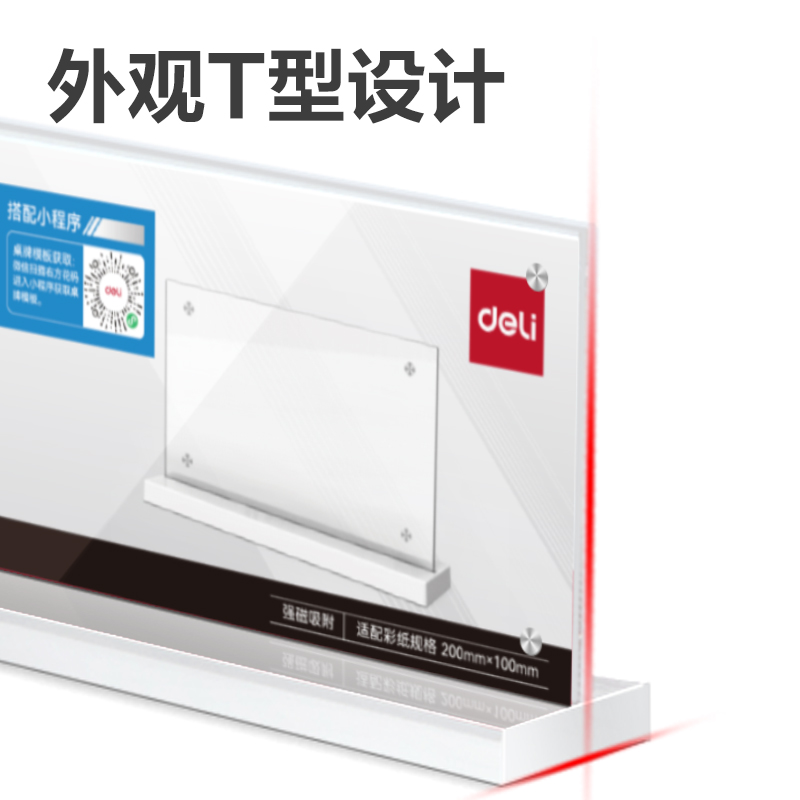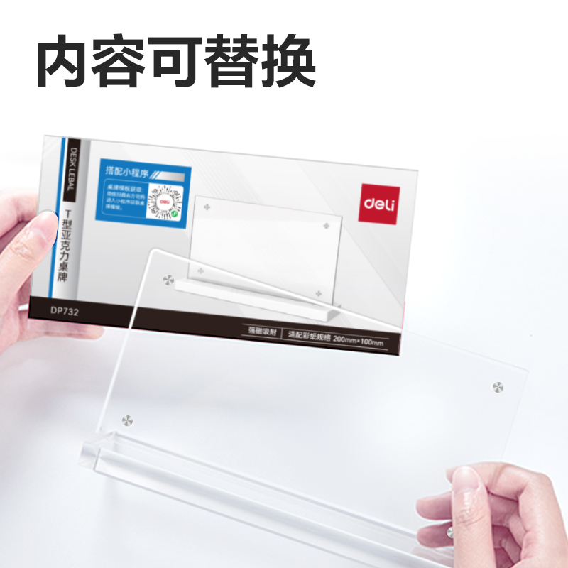 得力T型强磁亚克力桌牌DP732 200*100mm(透明)(只)