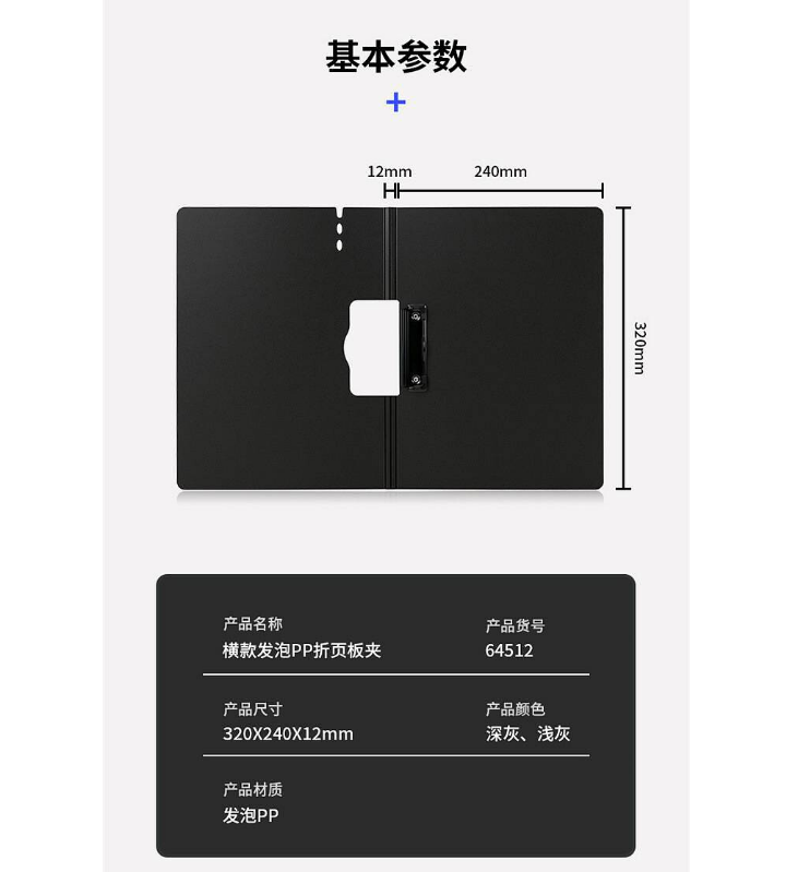 商品标题:得力发泡PP横款折页板夹64512(深灰)(个)