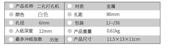 商品标题:得力(deli)0104/φ6mm可打35页两孔打孔器打孔机(单位:台)白