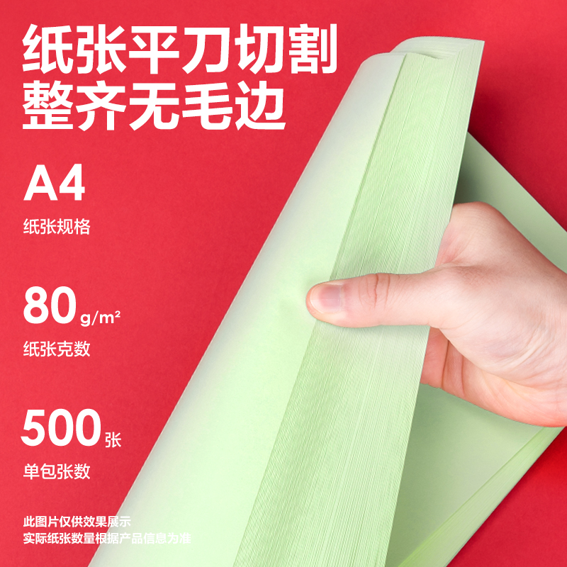 商品标题:得力7788彩色复印纸80g-A4-500页/包-5包/箱(浅绿)(包)