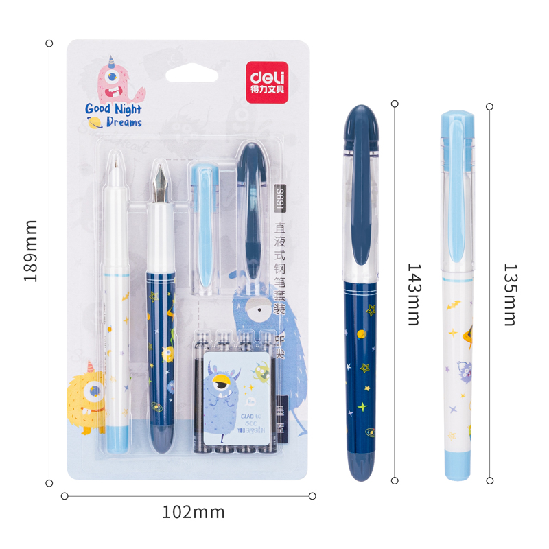 得力S691钢笔(墨蓝)(1明尖+1暗尖+4墨囊/卡)(卡)