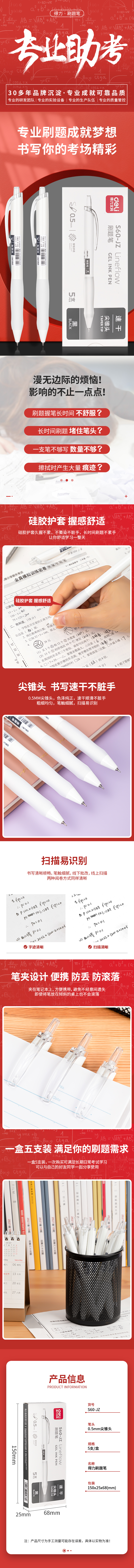 商品标题:得力S60-JZ速干顺滑按动中性笔0.5mm尖锥头(黑)(支)