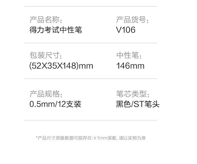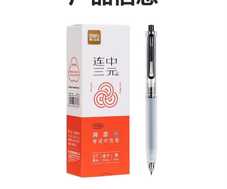 商品标题:得力V106静音按动考试中性笔0.5mmST头(黑)(支)