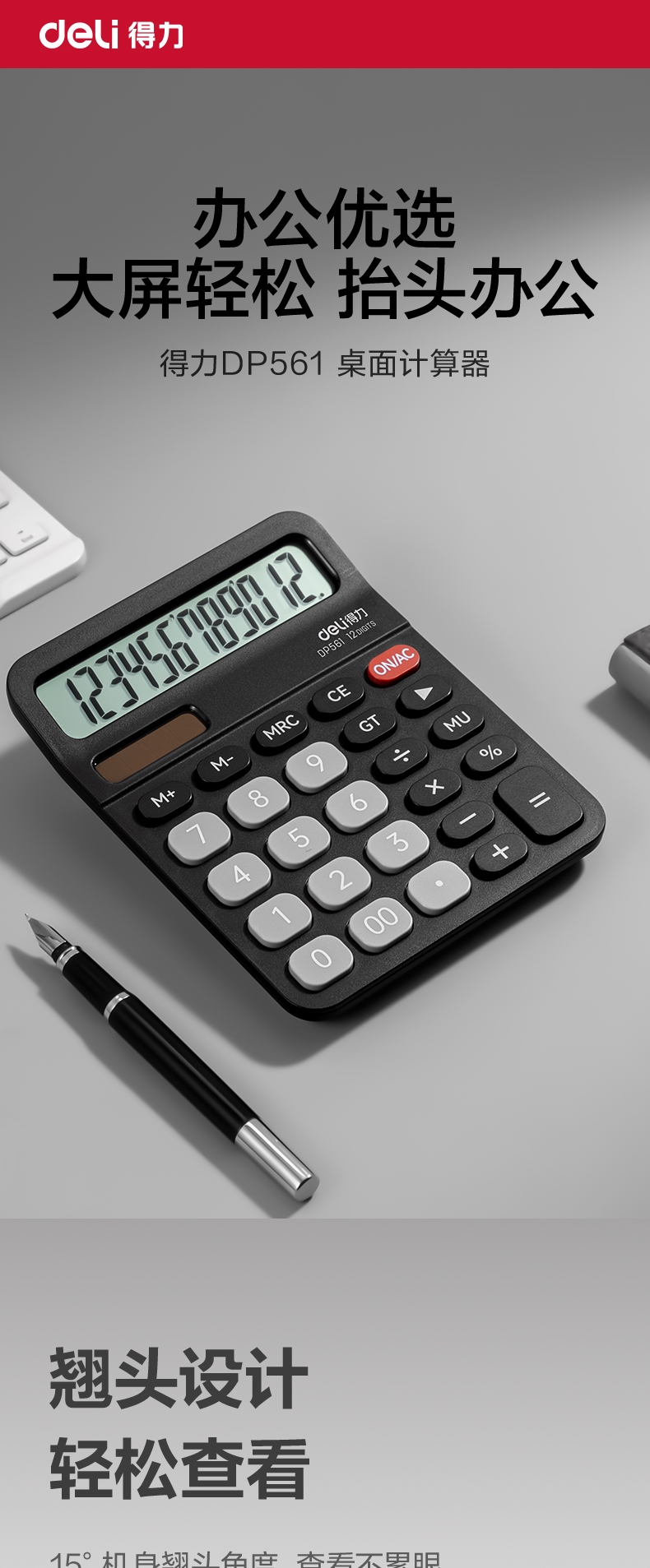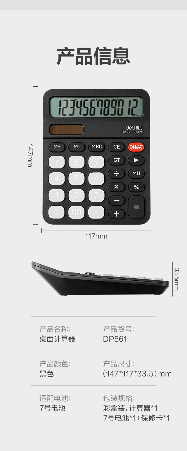 商品标题:得力DP561桌面计算器(黑色)(台)
