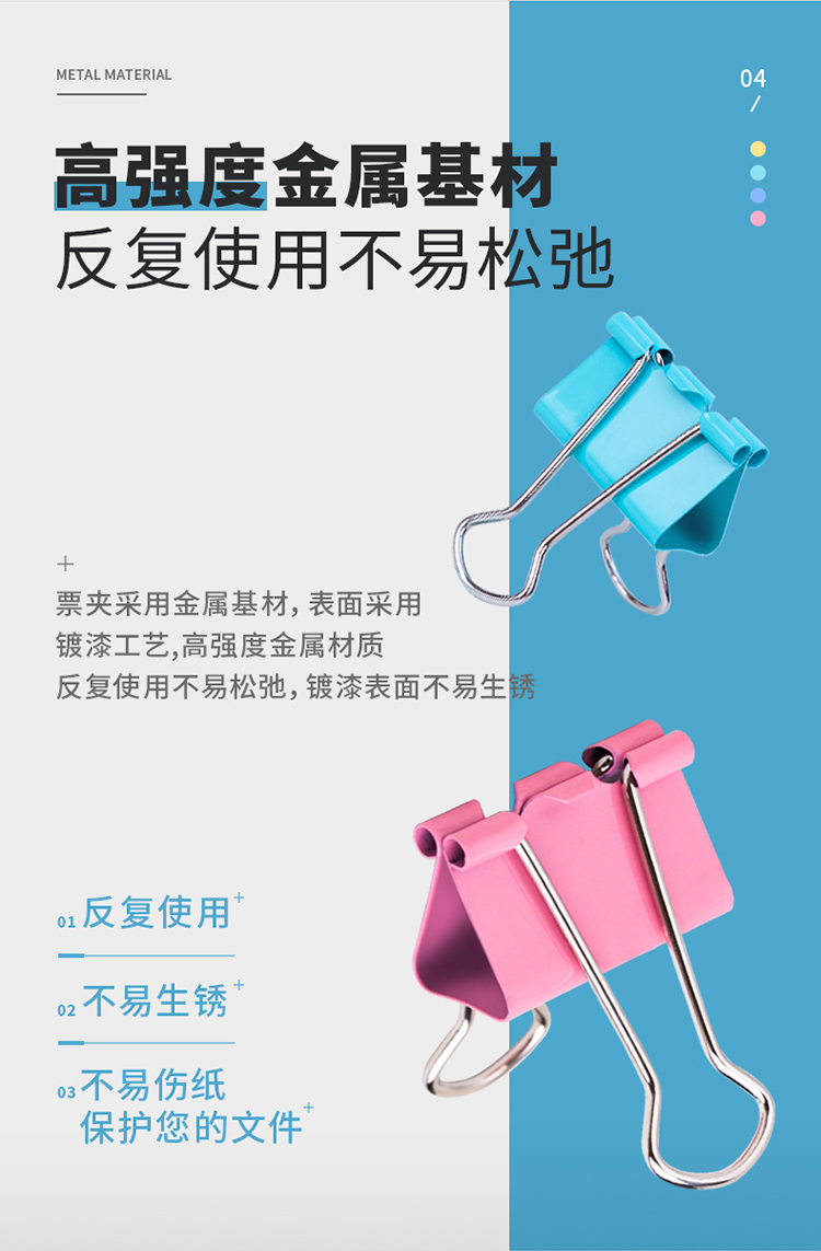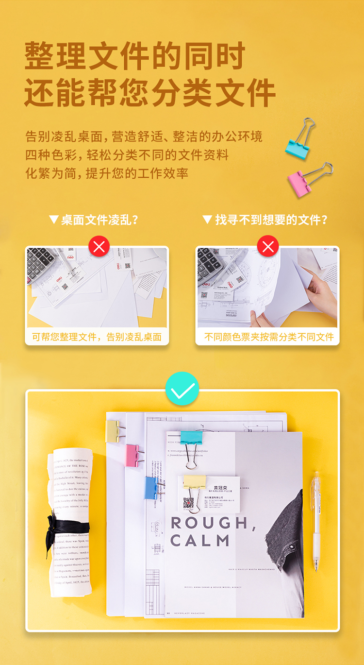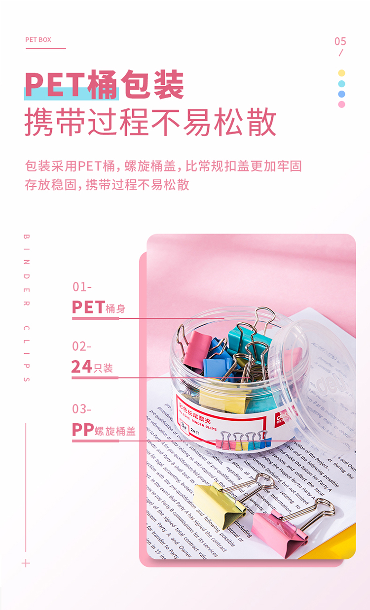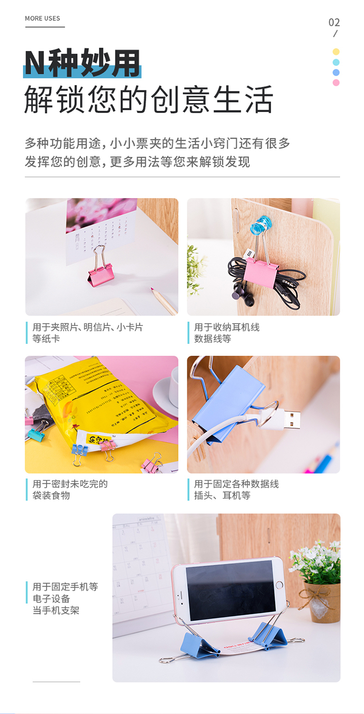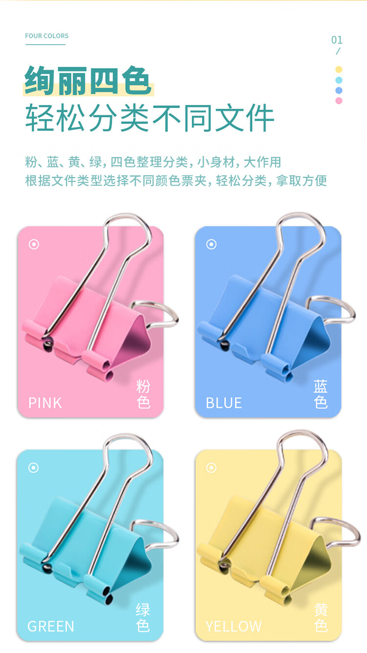 商品名称:得力 8553 彩色长尾票夹 32mm 24只/筒 (单位:筒) 混色