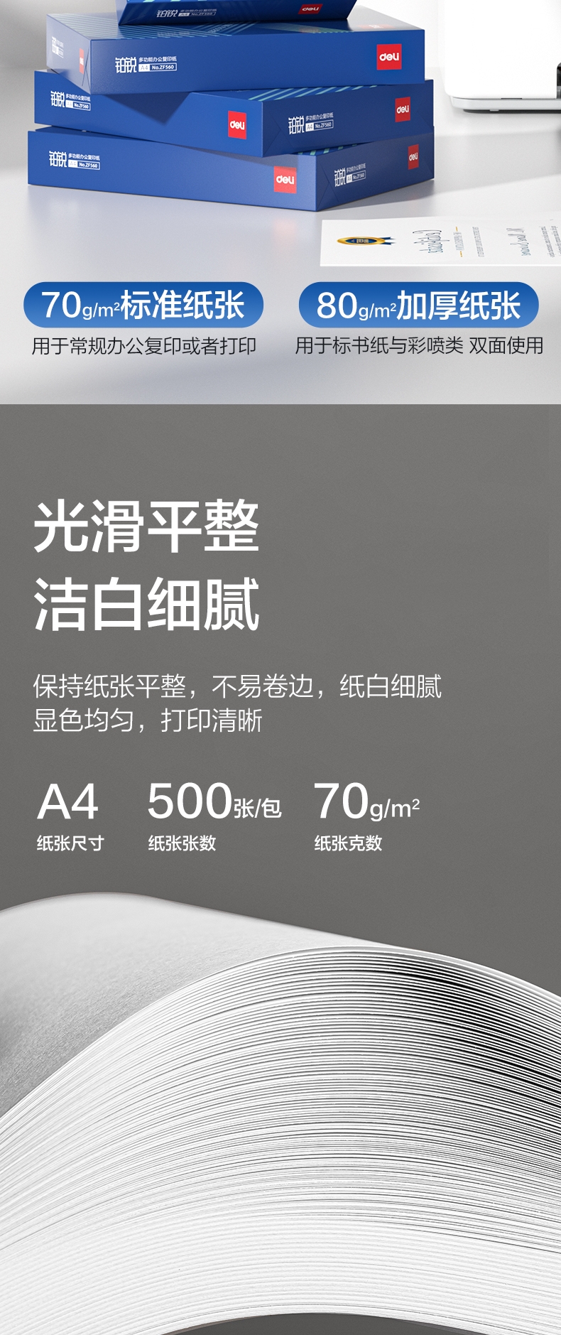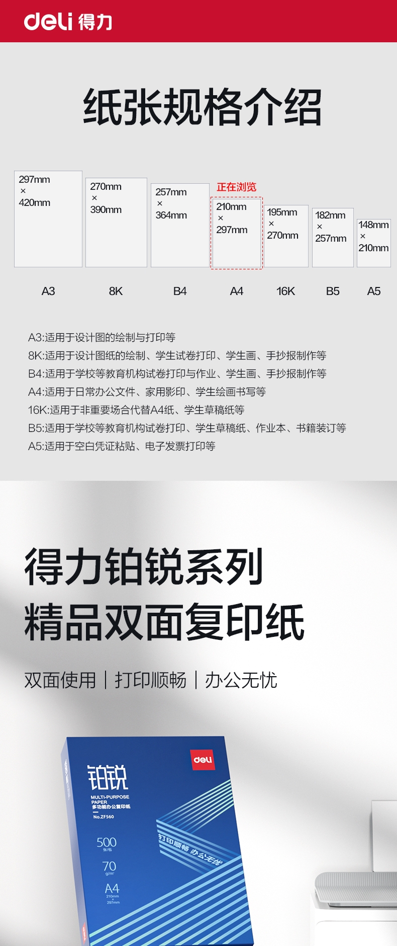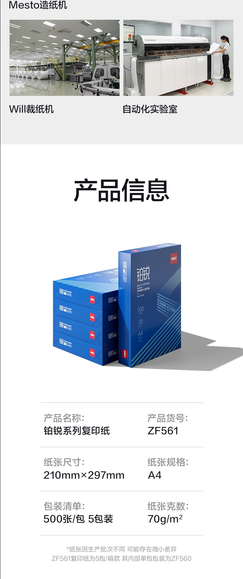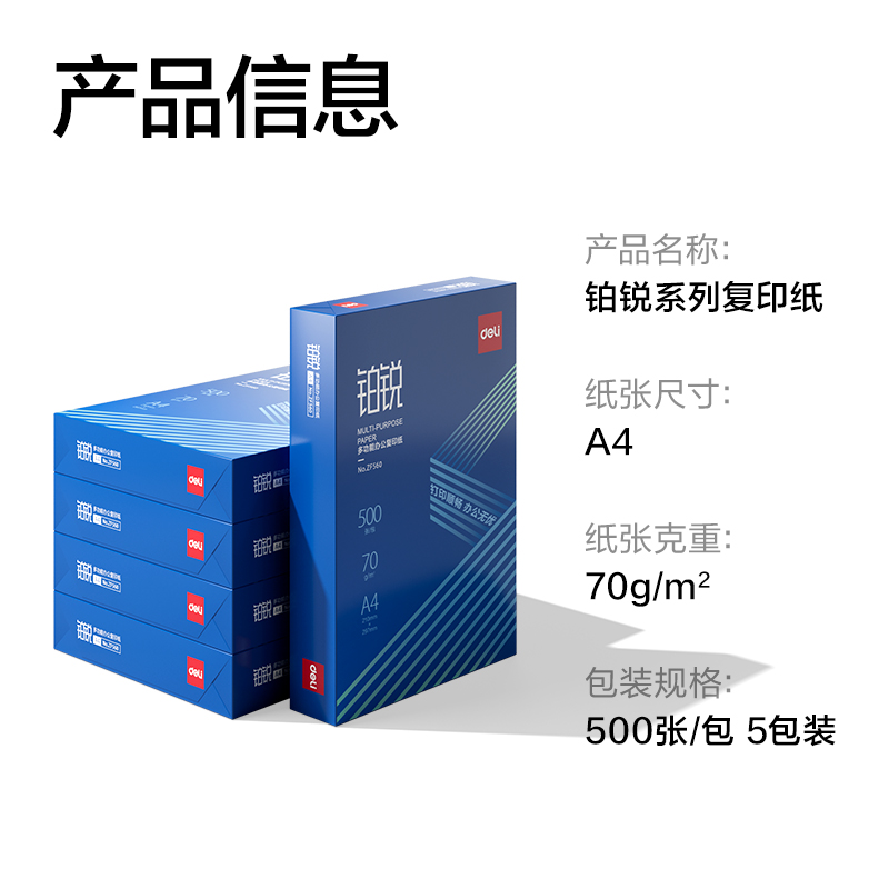 得力ZF561铂锐复印纸A4-70g-5包(蓝)(包)