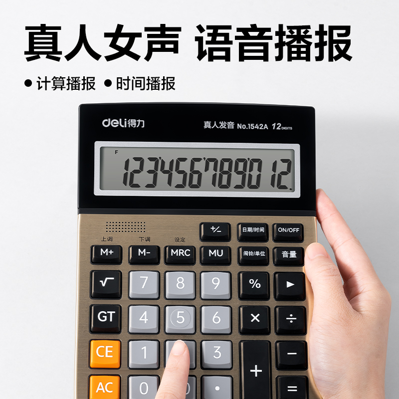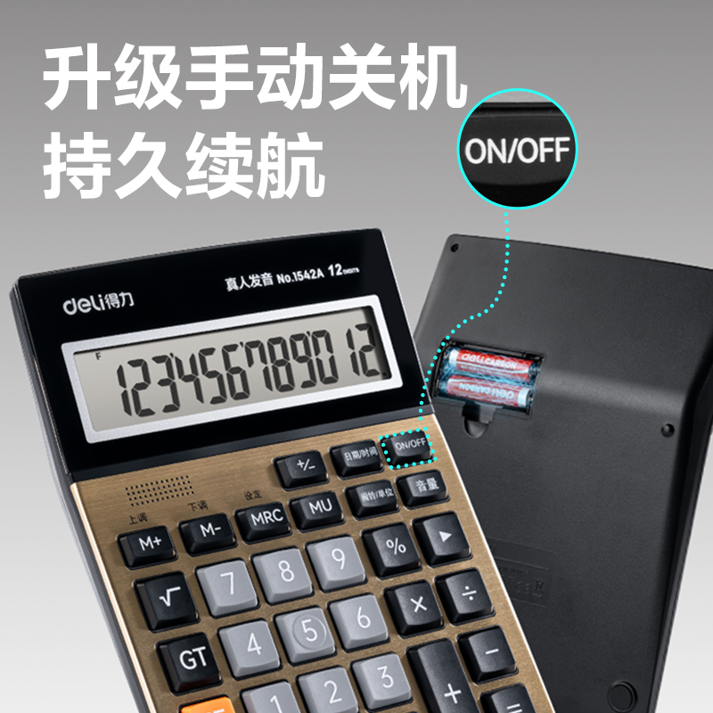 得力1542A手动关机语音计算器(金)(台)