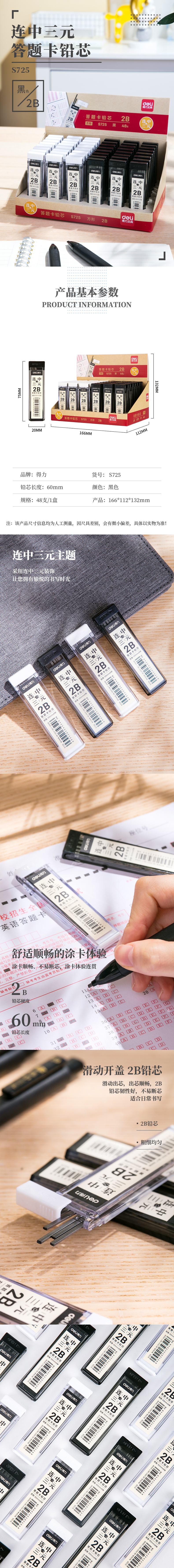 商品标题:得力S725连中三元答题卡铅芯2B-60MM(黑)(支)