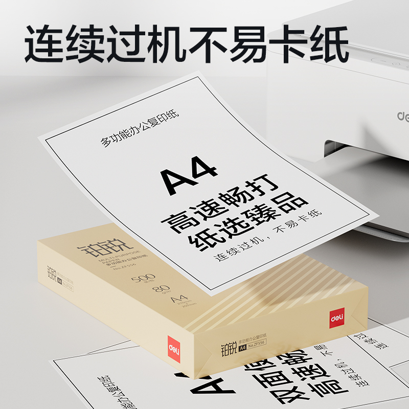 得力ZF557铂锐复印纸A4-80g-5包(金)(包)