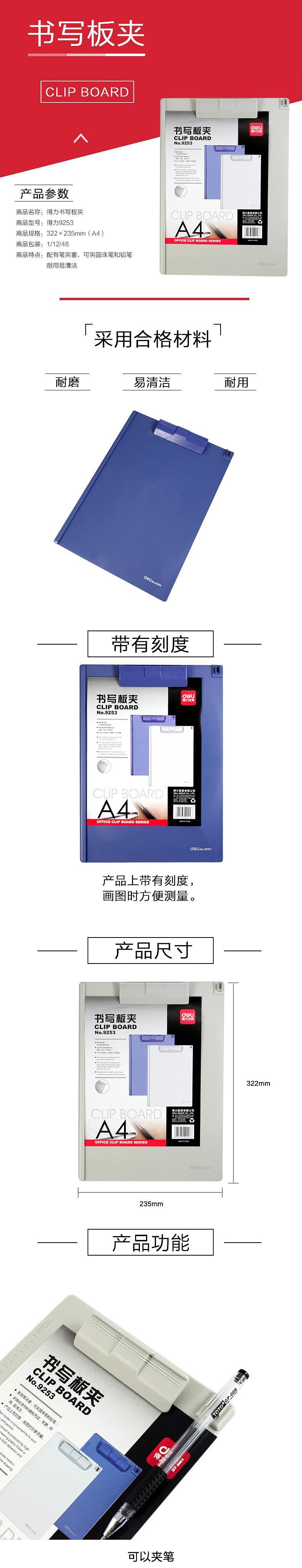 商品标题:得力9253 322x235mm/A5 厚2.0mm塑料板夹(白灰)(单位:只)
