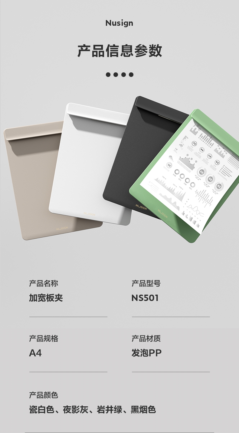 商品标题:得力纽赛NS501加宽板夹(黑烟)(个)