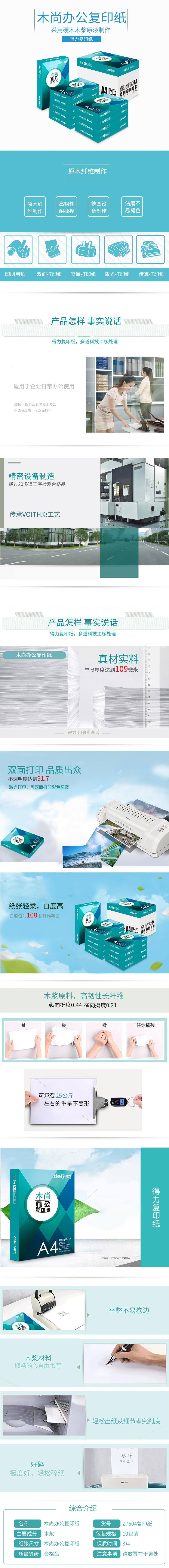 商品标题:得力Z7504木尚复印纸A4-70g-10包(白色)(包)
