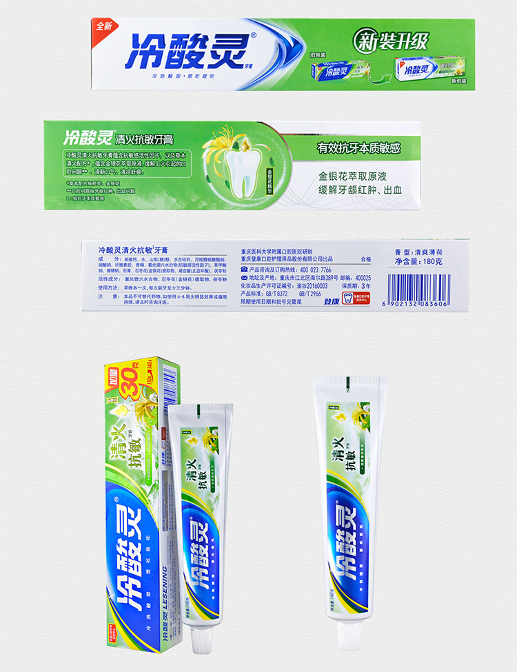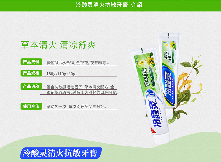 商品标题:冷酸灵清火抗敏牙膏180克(支)