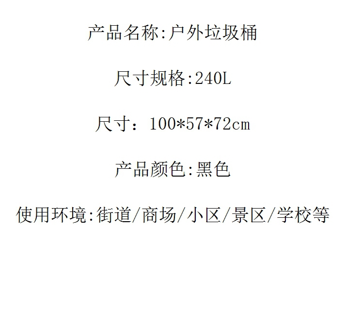 商品名称:科力邦KB5103户外垃圾桶黑色新国标分类垃圾桶大号加厚240L(个)