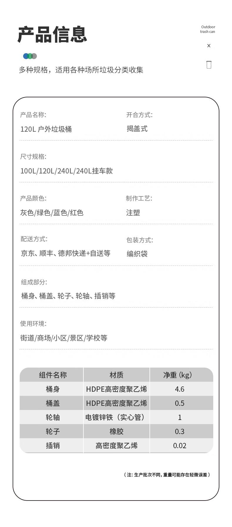 商品标题:科力邦KB5103户外垃圾桶黑色新国标分类垃圾桶大号加厚120L(个)