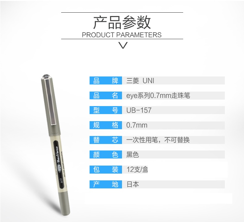 商品标题:三菱UB-157中性笔0.7mm黑芯12支/盒(支)